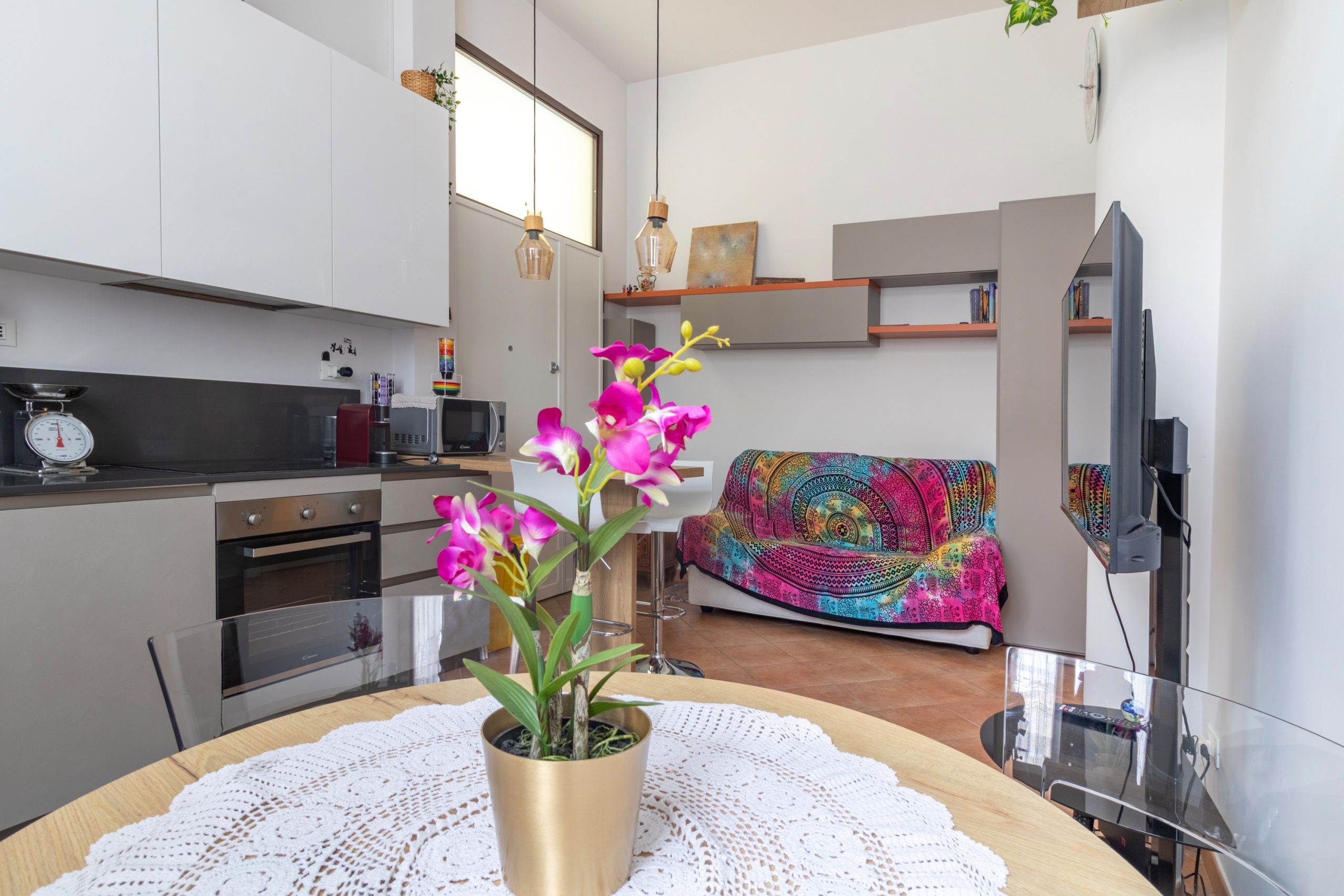 Qui, cucina e living dialogano in un unico respiro, creando un ambiente fluido, già vestito di arredi scelti con cura, pronto per accogliere i tuoi momenti più belli.